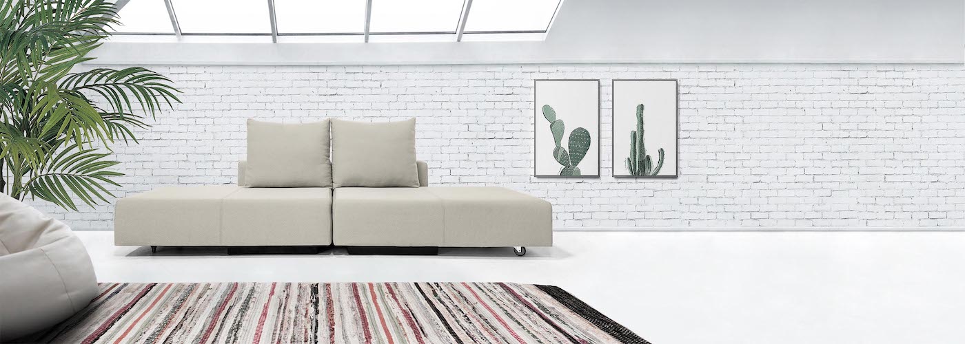 il divano BonBon2 diventa agevolmente un divano ad angolo o un letto singolo,