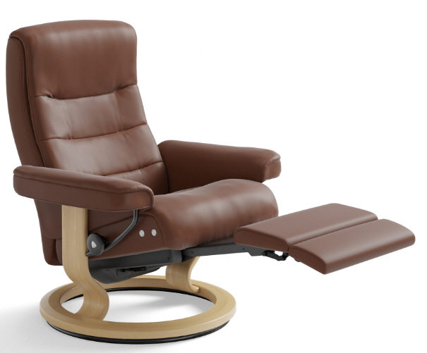 Poggiapiedi: L-54 cm A- 40 cm P- 41 cm NORDIC Classic e' la poltrona relax moderna di Stressless, una poltrona dalle linee semplici e sobrie la cui eleganza vi conquisterà. Questa poltrona relax è dotata delle ultime innovazioni immaginate da Stressless per offrirvi il massimo comfort possibile. Il sistema di scorrimenti garantisce un oscillamento all’indietro dolce, le spume della seduta e dello schienale garantiscono un sostengo della schiena e delle lombari di cui non potrete più fare a meno.tressless Nordic ha un aspetto moderno, contemporaneo e confortevole che ben si addice alla maggior parte dei divani della collezione Stressless. Le poltrone Stressless Nordic con schienale reclinabile sono perfettamente adeguate ai momenti da trascorrere in compagnia nel salone, nonché di relax o di riposo davanti alla televisione, sfogliando la propria rivista preferita. Per procurarvi esattamente lo stesso comfort che desiderate, qualunque sia la vostra corporatura. La poltrona reclinabile Stressless Nordic è proposta in 3 taglie S, M, L. Potrete anche scegliere tra 2 tipi di piede d'appoggio: il piede d’appoggio Classic, il comfort assoluto, in faggio stratificato e il piede d'appoggio Signature che combina alluminio e faggio stratificato e dà la sensazione di stare su una nuvola. Dispone della funzione sonno: la poltrona è reclinabile fino a diventare orizzontale, per sdraiarsi .