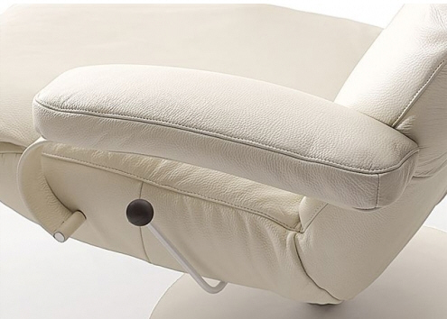 Tutta la poltrona ruota di 360° Il basamento è in legno ricoperto in pelle stesso colore della poltrona-Ostuni Poltrona relax Poggiapiedi ad estrazione indipendente, schienale recliner, poggiatesta regolabile, rotazione a 360 gradi. Finiture Basamento in legno verniciato nei colori come campionario, oppure rivestito in pelle. Parti in metallo: verniciate alluminio o nero. Rivestimento: pelle - microfibra - ecopelle - tessuto. Struttura in acciaio. Imbottitura in DACRON su supporto in espanso ad alta elasticità.