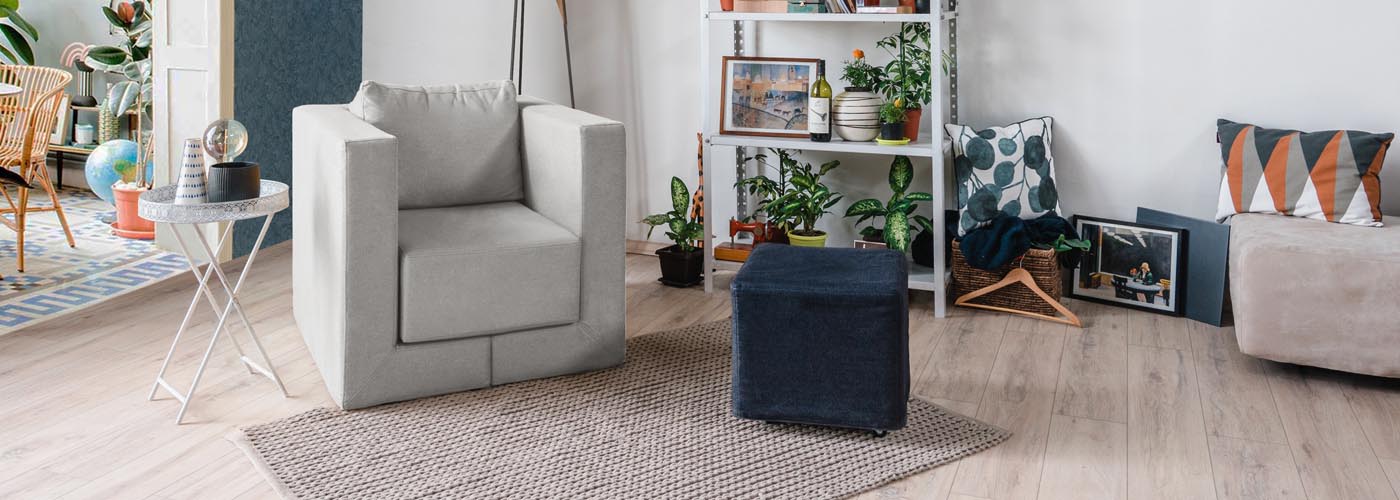 Un’eleganza combinata, semplicità e stile con disegno razionale, Quattro elementi che creano la Q6, da la possibilità di più configurazioni. Q6 è costruita da una solida struttura di legno di faggio, coperta con strato di poliuretano ad alta densità e tappezzato con durabili materiali tessili. Rapresenta un pezzo di arredo che può essere facilmente mantenuto, per molti anni a venire. Q6 e' una poltrona che puo' essere facilmente trasformata in un letto singolo o in un set di sedute muovendo semplicemente le quattro parti che lo compongono .Struttura legno di faggio massello HDF Boards ,OSB imbottitura Simpen densitaa'30kg/m3 Tessuti 300/gr/m2 tessuto scamosciato polyestere 100% supporto cotone 20% polyestre 80% inbottitura cuscini fibra acrilica siliconata La possibilità di cambiare la posizione della poltrona con diverse combinazioni permette di adattere il mobile a moltepllici soluzioni abitative.L’arredamento diventa parte dell’architettura della casa stessa, le sue forme si adattano ad ogni contesto, una linea pulita e una seduta comoda sono i punti di forza della poltrona Q6.In poche semplici mosse la poltrona si trasforma in angolo divano per accogliere amici o parenti, l’elemento del bracciolo diventa seduta e la seduta diventa un pratico tavolino…nel caso in cui servisse un posto letto in più per gli ospiti o per gli amici dei figli la poltrona Q6 diventa un letto da una piazza con dimensioni 190×75 cm! la praticità della poltrona Q6, la struttura in legno massello,l’espanso ad alta densità e il rivestimento in microfibra fanno di questa poltrona letto un prodotto che dura nel tempo e facile da pulire con un costo aggiuntivo si puo' avere in versione sfoderabile! Formato da 4 pezzi. Il cuscino e l'elemento da seduta sono provvisti di fodere rimovibili, mentre i poggiabraccio non possono essere provvisti di fodere rimovibili. Il colore deve essere lo stesso per tutti gli elementi